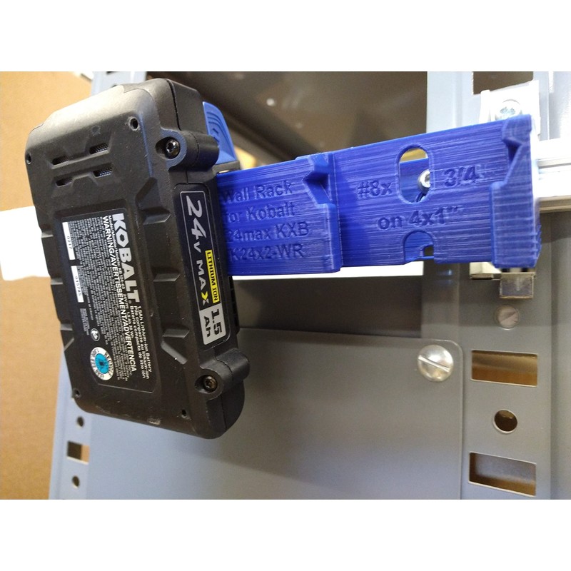 - Secure Latching Rack Hold for up to 2 Kobalt KXB or KB 24Vmax batteries.