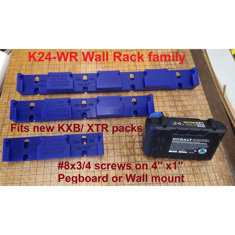 K24 2 slot Battery Rack for Kobalt Wall Mount Holder Latching Storage Rack 24VMax and KXB/ XTR Ultimate Output packs KXB-424-03, KXB-824-03. KB-124-03, KB-324-03, KB424-03, KB-624-03. USA PN K24x2-WR