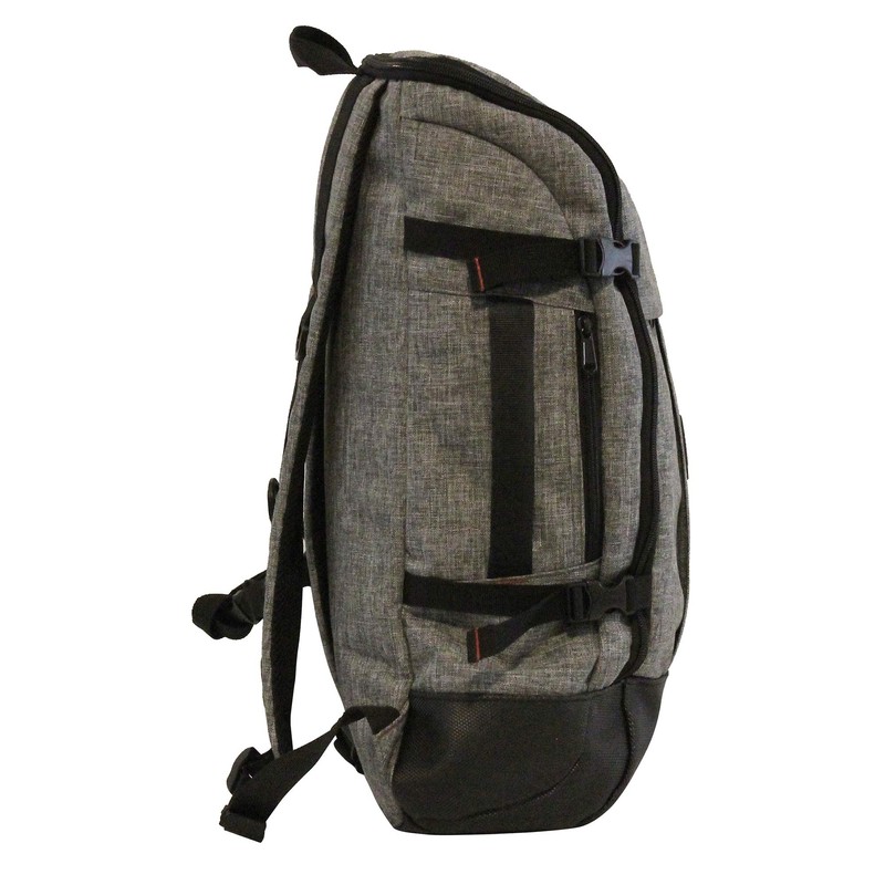 - ORGANIZATION. Internal Large Main Compartment with padded 15” laptop sleeve, zippered pocket and elasticized pocket. (1) External side mesh Pocket or Bottle Holder and (2) exterior zippered pockets. Compression straps for gear attachment or to secure bag in travel.