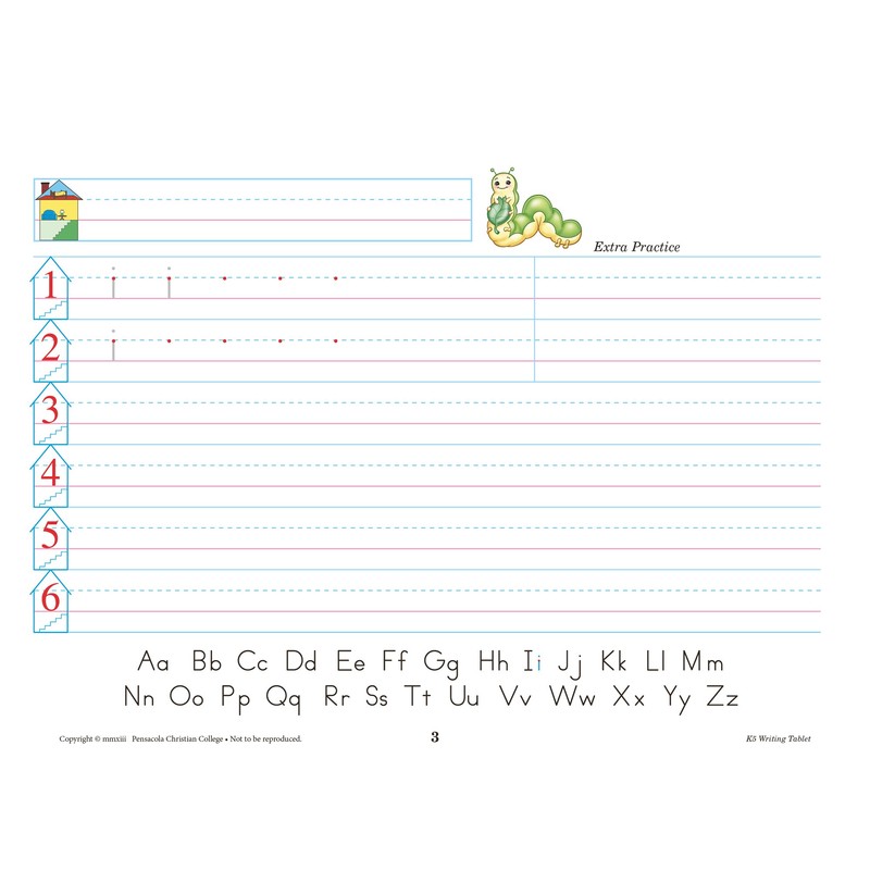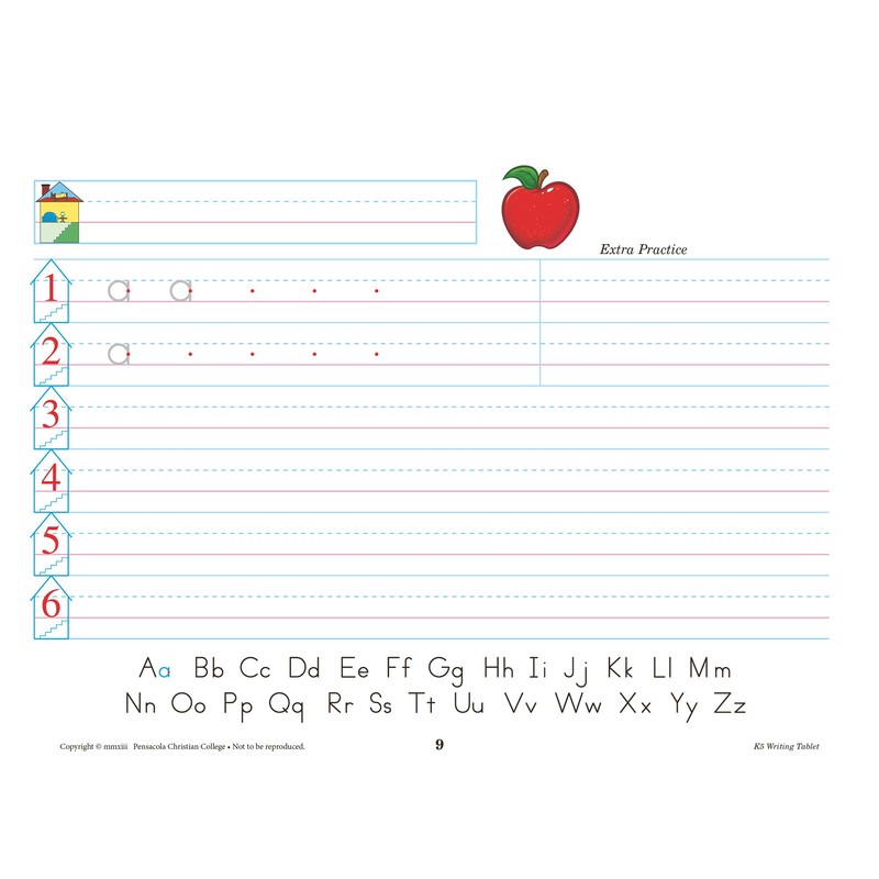 K5 Writing Tablet - Abeka 5 Year Old Kindergarten Manuscript Penmanship Student Lined Writing Paper