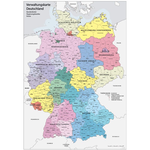 K703 XXL DIN B1, (1000 x 700 mm), Management Map, Germany Federal States, State Boundaries