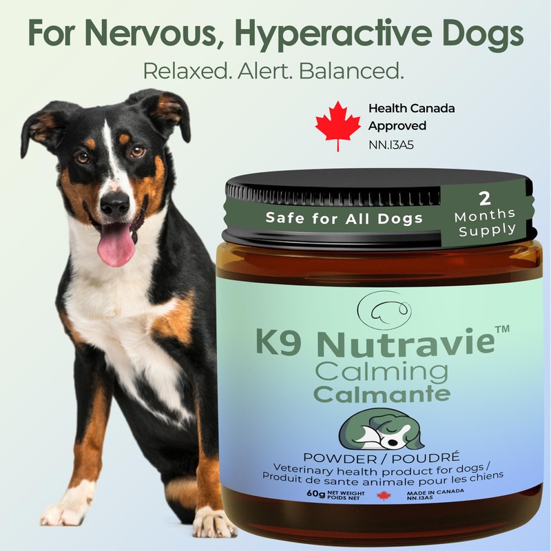 K9 Nutravie Calming Powder for Dogs – Vet‑Formulated Anxiety Relief Supplement with Magnesium & L‑Theanine for Stress, Travel & Loud Noises – Unflavored & Odorless, 2 g Scoop, 1‑Pack