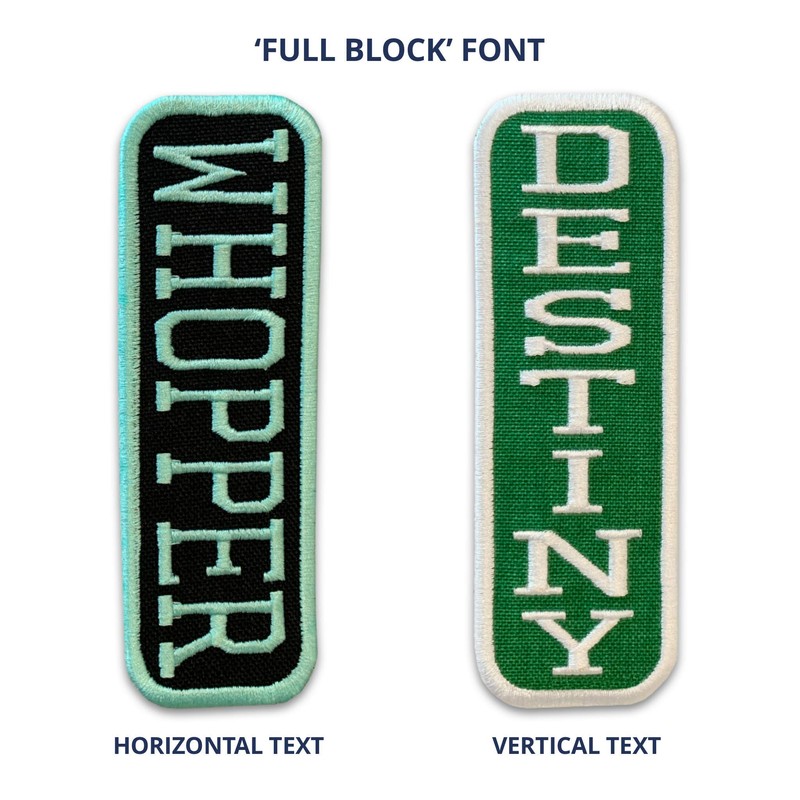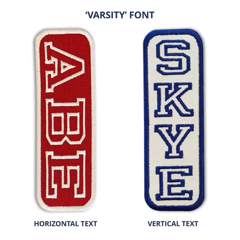 - CUSTOM NAME PATCH FOR YOUR PET: Create a special name tag for your pup by choosing from 14 different colored hook and loop patches. Each patch can be further customized by adding a secondary background color and 11 different font colors. These custom hook and loop patches are perfect for showing off your companion's personality. You also have the option to choose a vertical or horizontal text layout.