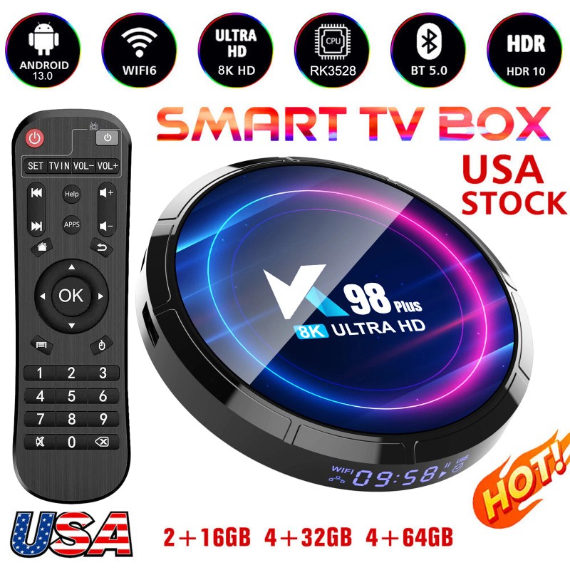 K98 PLUS Smart Android TV Box can change your traditional TV & LCD monitor into a multimedia center by connecting the Internet (Via WiFi or RJ45). This smart Android TV Box will bring you much fun and convenience with its powerful feature: Android 13.0, RK3528 Quad-core 64-bit Cortex-A53 CPU, Mali-450 GPU, 2GB RAM+16GB ROM/4GB RAM+32GB ROM/4GB RAM+64GB ROM optional, 8K video hardware decoding, 2.4G/5G dual-band WiFi6, BT5.0 and 100M LAN. Simply plug it into your TV, and you are ready to go!