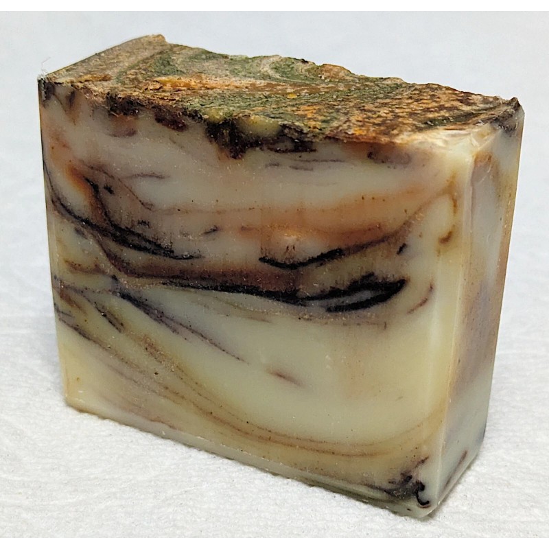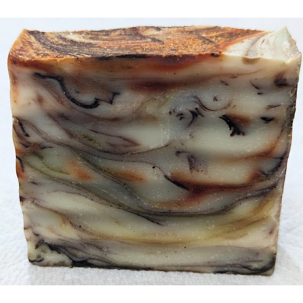• Dutch Process Cocoa Powder, Turmeric Powder, Ginger Powder, Moringa Powder, and Cinnamon Powder (Natural colorants that provides the complex marble swirled design in this soap.)