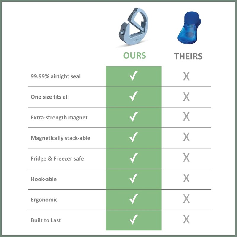 • STACKABLE: kaam’s magnets allow for tidy stacking in your kitchen drawer, keeping you organized and saving valuable space. Our stackable bag clips help you organize your pantry efficiently, allowing you to neatly stack and store sealed food bags, maximizing space and keeping your kitchen tidy while preserving the freshness of snacks, chips, and bread.