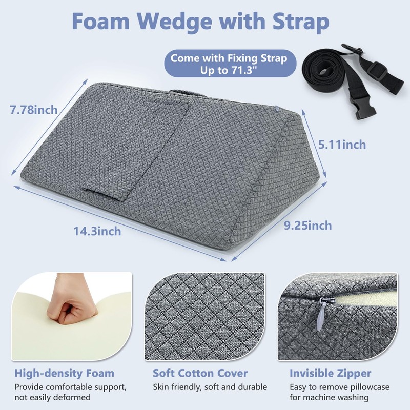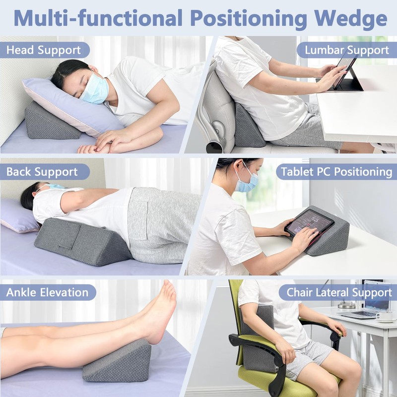 - 【Multi-functional Wedge Pillows】 In addition to serving as wheelchair lateral cushion, it can also be used as wedge pillows for sleeping, supporting the back, hands, knees, ankles, etc., helping improve sleeping posture, alleviating localized discomfort, and promoting blood circulation.