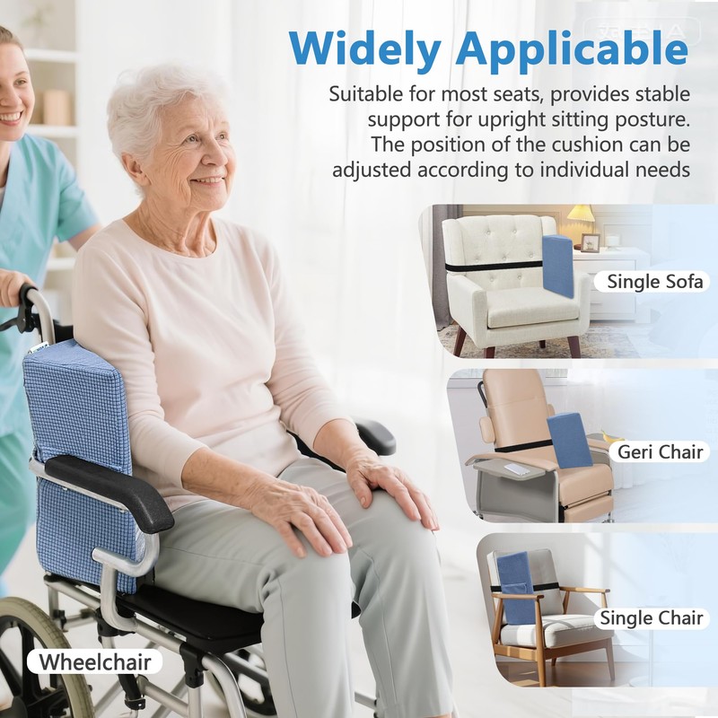 • 【Wheelchair Lateral Support Cushion】The set includes one cushion and an adjustable strap, suitable for installation on either side of the wheelchair. Provides targeted torso support to help users maintain proper posture, preventing leaning and reducing contact with handrails for a safer, more comfortable seating experience.