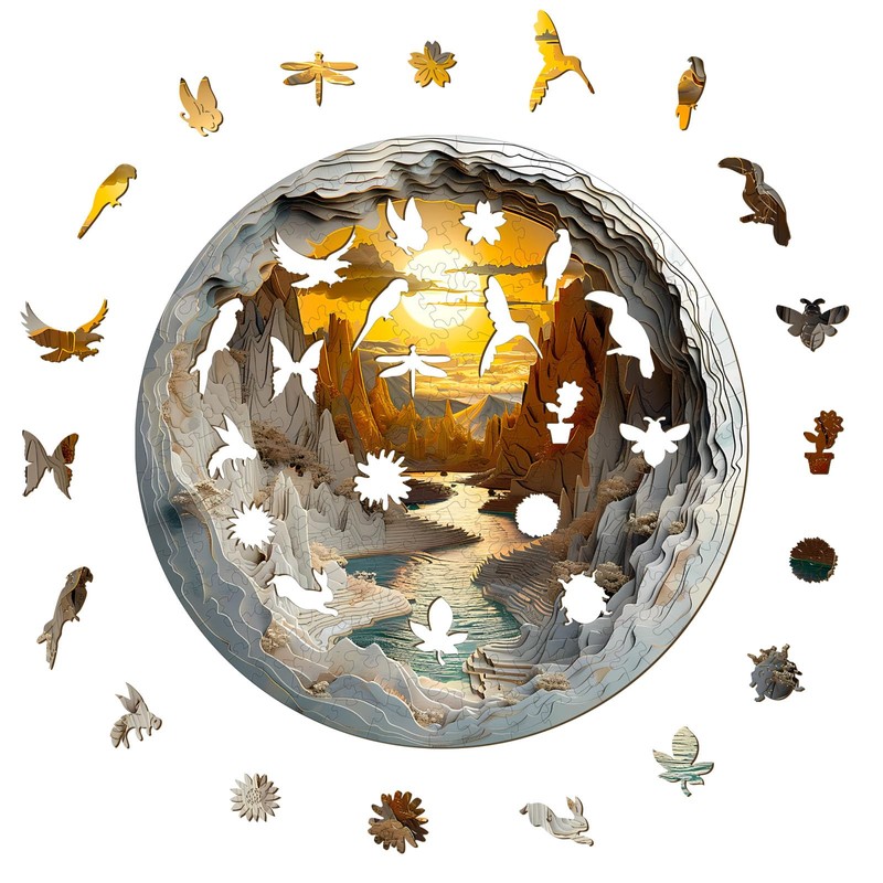 KAAYEE Wooden Jigsaw Puzzles-3D Vision Cave Wooden Puzzle Adult Unique Shape Wooden Puzzle Wooden Jigsaw Puzzle for Adult,Puzzle for Adults,Family Puzzles for Aduls (L-13.4 * 13.4in-300pcs)