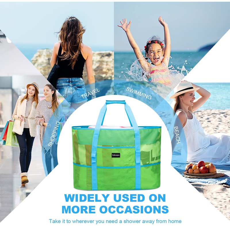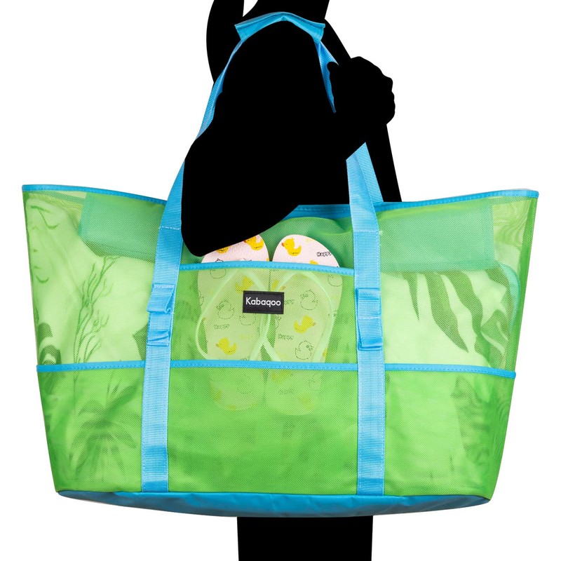 - Extra Large Storage Space: The 21.6"L x 15.7"H x 8.7"W mesh beach bag is big enough to carry 4-6 beach towels, sunscreen, snacks and scuba dive equipment, swimming gear, beach toys, water shoes, water bottles, sunblock, goggles and even has room left; Hold everything you need for a day on the beach / pool