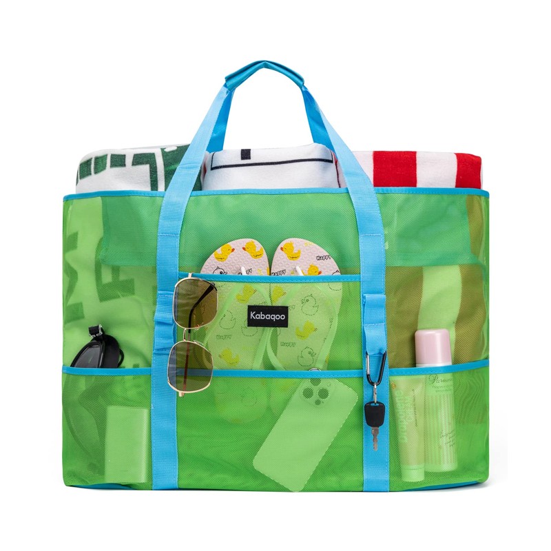 KABAQOO Mesh Beach Bag, Extra Large Beach Bags with 9 Pockets & Zipper Waterproof Lightweight Beach Tote for Beach/Pool Trip
