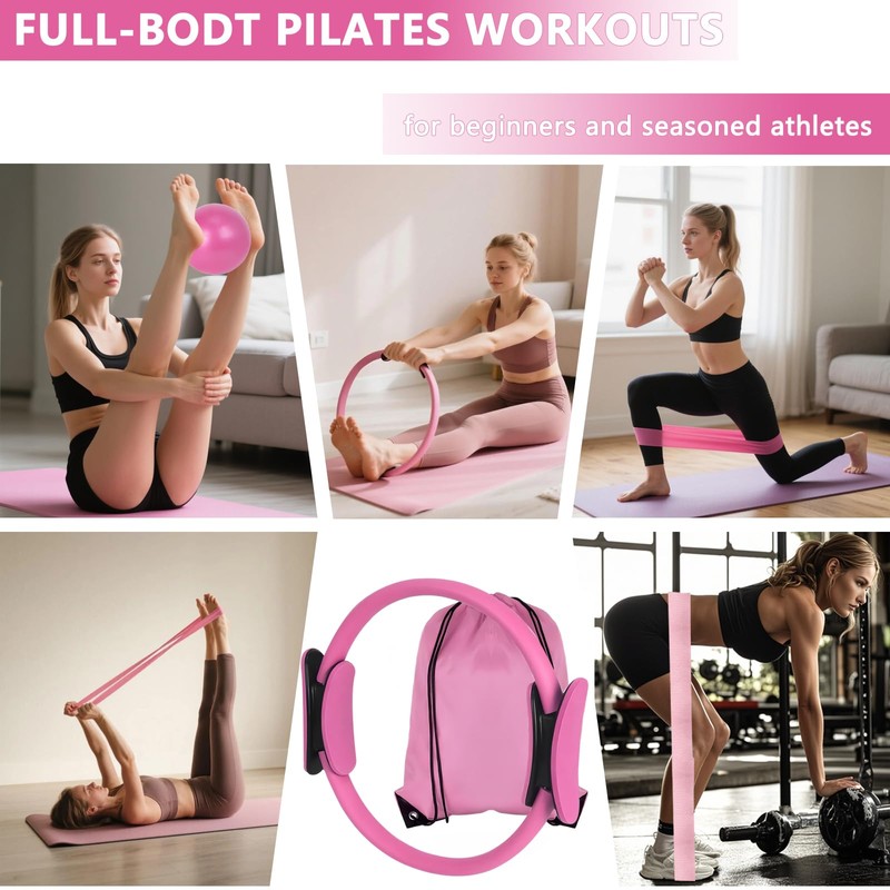 - HOME PILATES EQUIPMENT: the Pilates set contains different exercise machines that systematically help you strengthen your muscles, hips, legs, core, shoulders and arms and improve flexibility and agility. No matter what stage of life you are in, this Pilates ring has you covered