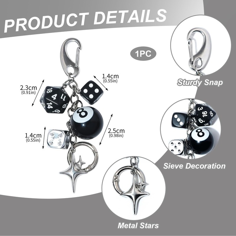 - Unique design: stylish 8 ball cube charm that adds a special accent to any keychain or handbag charm