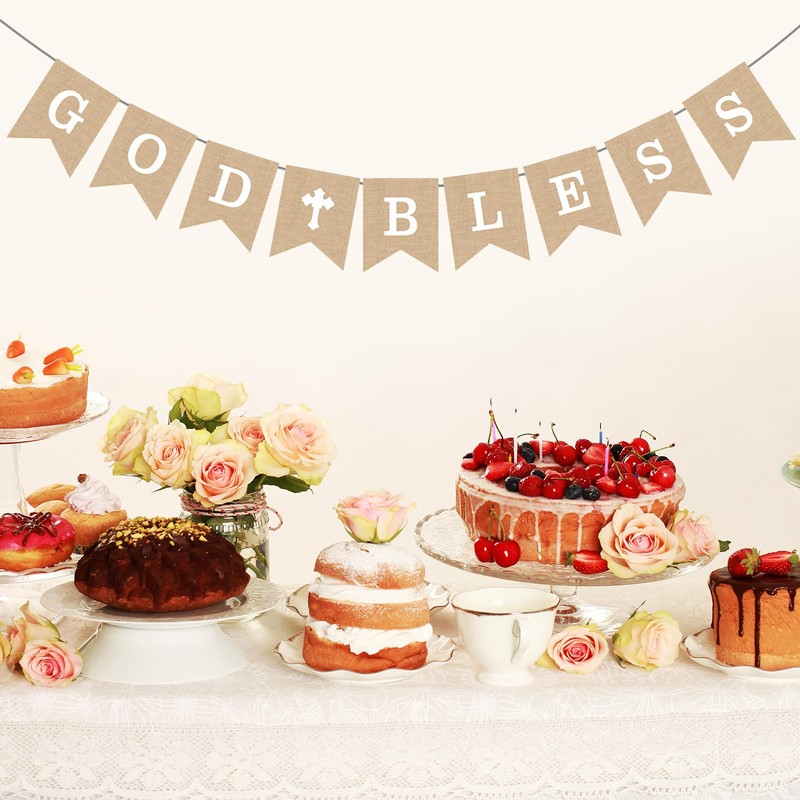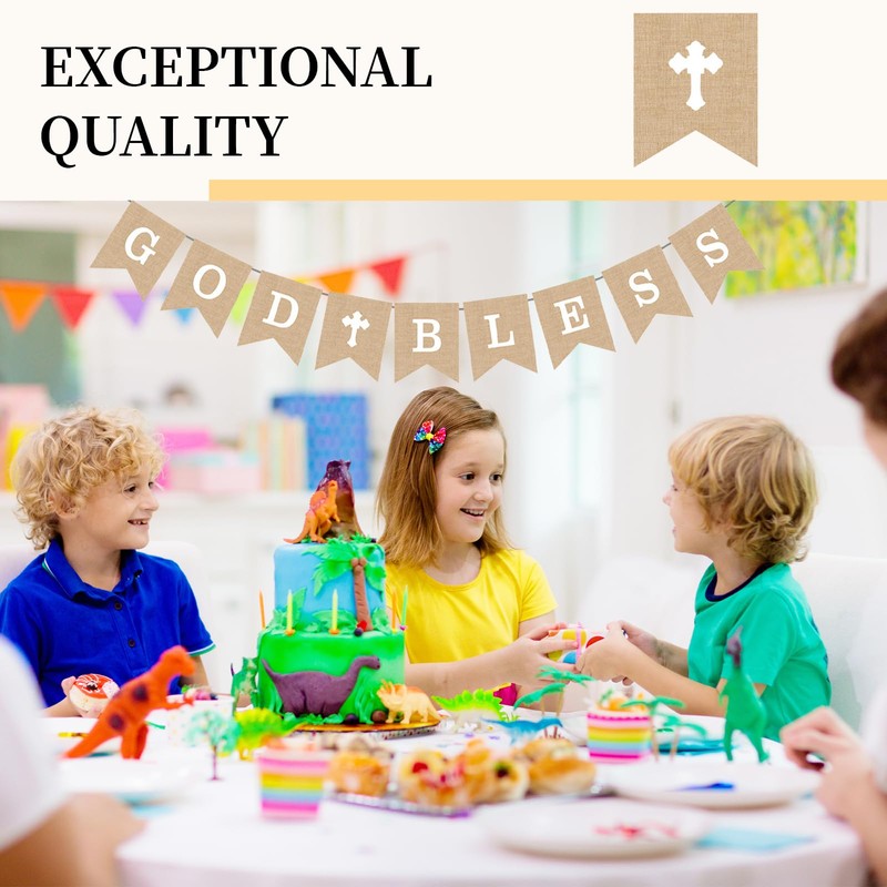 • EASY TO USE: Experience unparalleled convenience with the Kabwea God Bless Banner that comes ready assembled. This first communion decoration saves you valuable time as it is already strung ahead of time and ready to use. This feature makes it ideal for busy event planners and families who want to enjoy the special occasion without the added stress of preparing