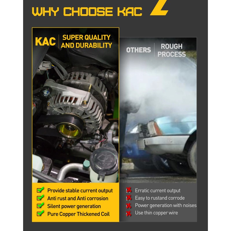 【OE Quality】: The KAC Alternator is made of high-quality materials and is a direct replacement for the original Alternator, which is consistent in structure and function with the original Alternator.