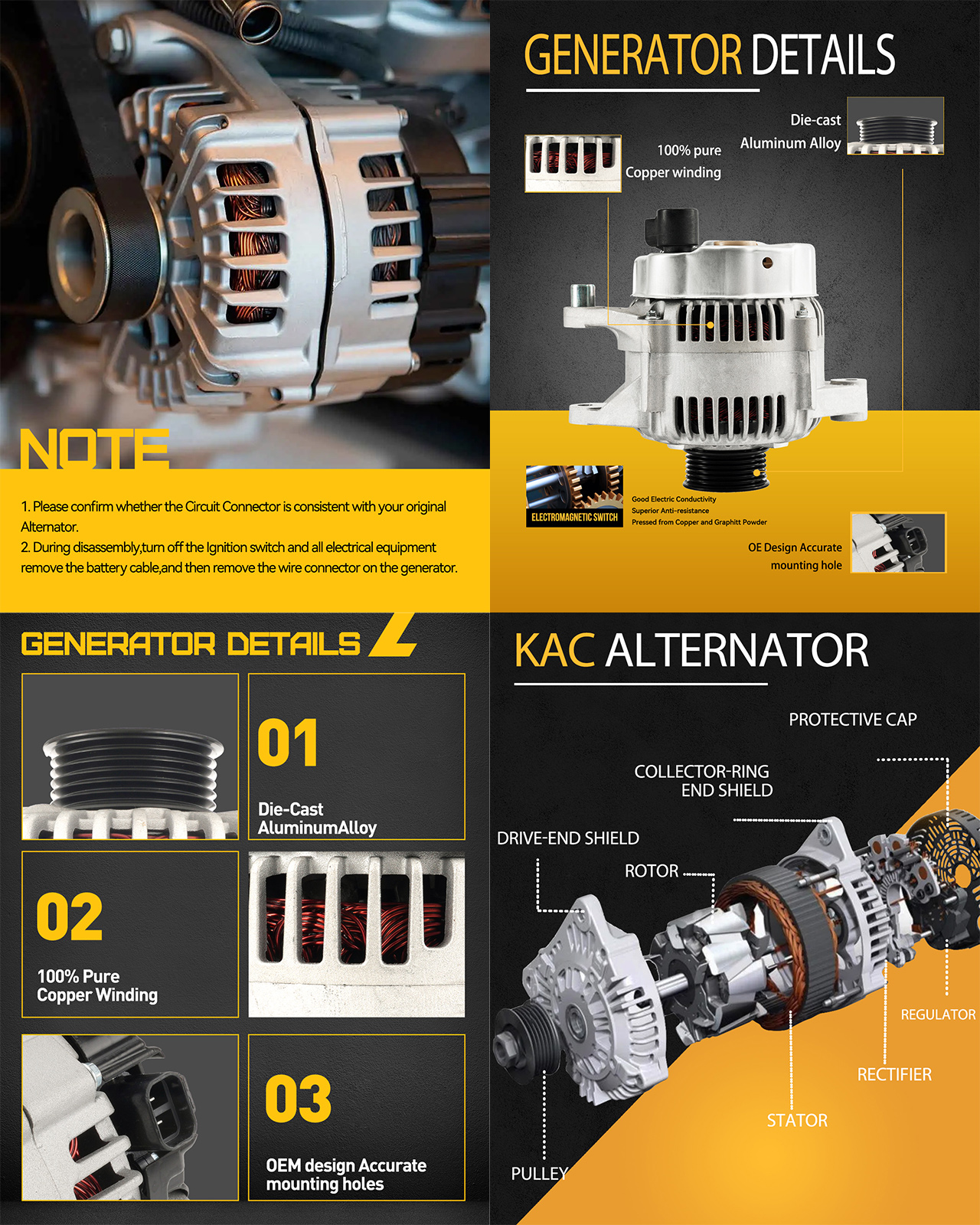 【 Reliable 】: The KAC Alternator is made of high-quality materials and is a direct replacement for the original Alternator, which is consistent in structure and function with the original Alternator.
