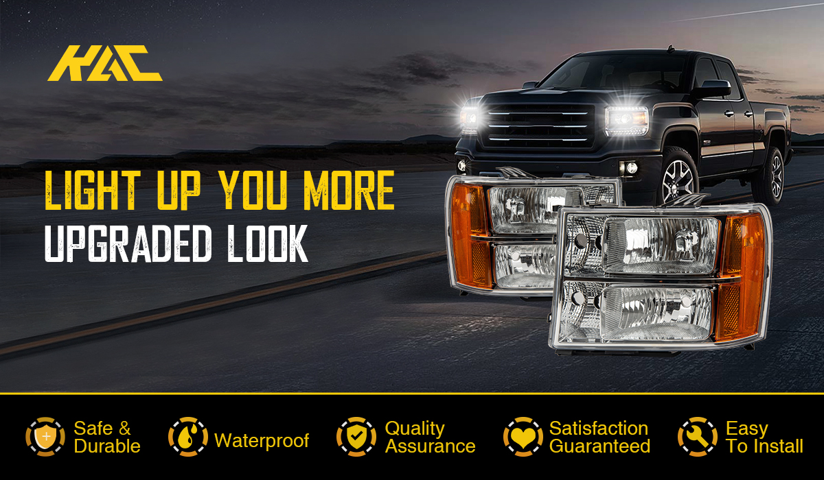 [Excellent Waterproofing] : Headlights Automotive Headlights Assembly Kit.Headlights are made of fully sealed ABS plastics with tensile/impact strength.It will not cause harmful effects with ip65 protection in rainy day even temporarily immersed in 1m deep water.Performing well in good rigidity and dimensional stability to insuring the service life more than about 3 years than your stock headlamps.