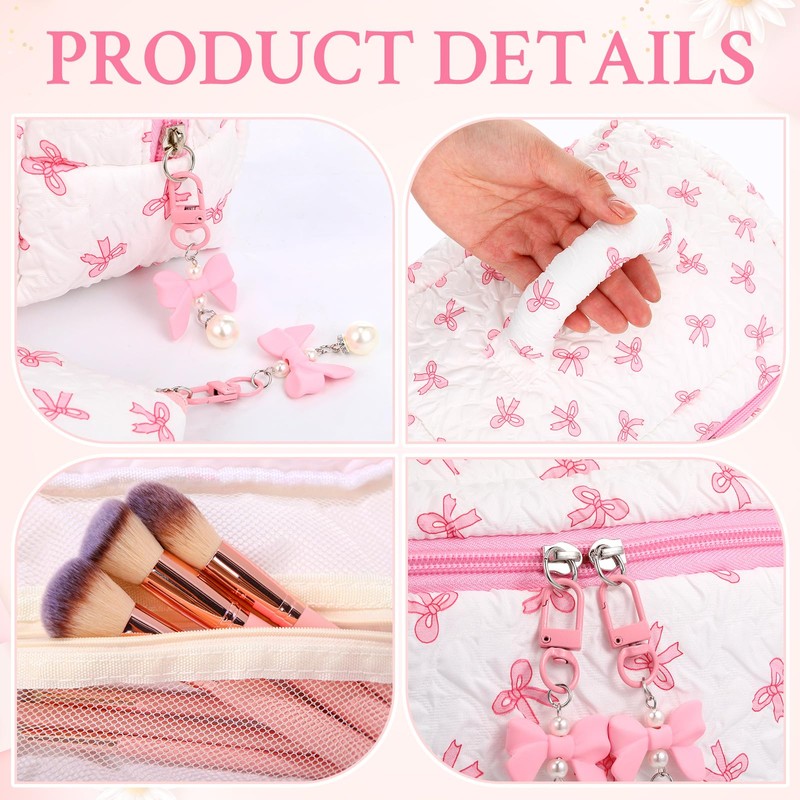 - Elegant Bow Design: the makeup bag features a delightful combination of delicate quilting and a charming bow pattern, offering a vintage yet modern aesthetic; The bow chain zipper not only adds an elegant touch but also ensures durability, making these bags a stylish and functional choice for everyday use and travel; The coquette aesthetic makes a bold statement wherever you go