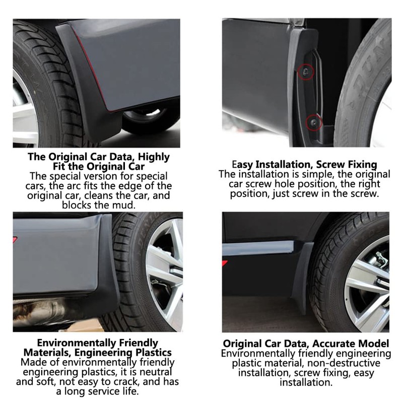 • 【-mud Splash】This splash guard has good impact resistance, heat resistance, low tempeure resistance, resistance, and is not easy to fade. It s the car well, not only reducing mud splashing, but also keeping debris from the road from scching the car, making your car cleaner and more beautiful!