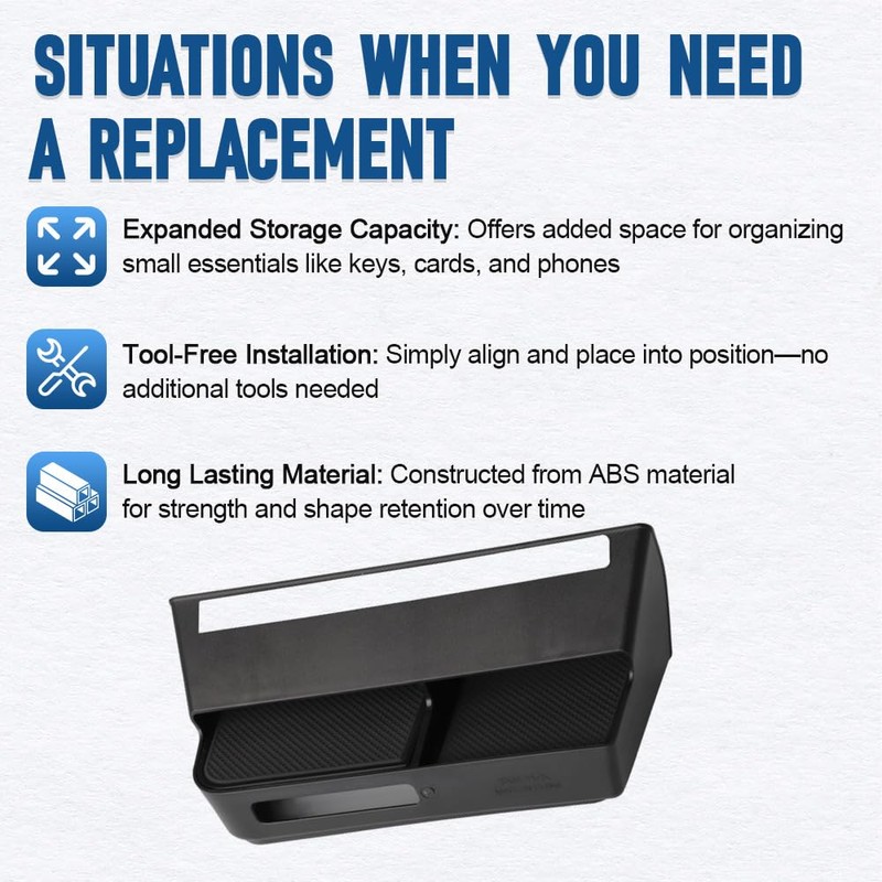 • Sturdy ABS Construction: The organizer tray is made of ABS material that withstands pressure and regular use without deformation, delivering a long service period inside the cabin