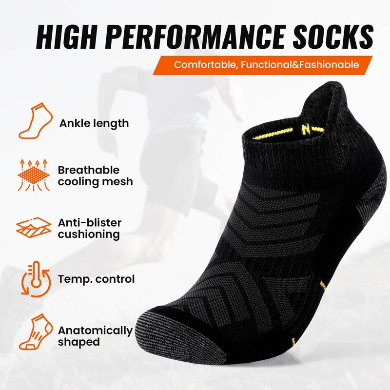 - PROTECTION FOR FEET - These mens wool running ankle socks have stretchy cuff and arch support, which can have great compression support to reduce fatigue, protect the Achilles tendon, promote comfort during prolonged wear, and keep socks fit snugly. Cushioned sole absorbs shock and helps minimize blister risks during 10km+ hikes. Pull tab resist abrasion and prevent slipping. All of these provide more protection for your feet.