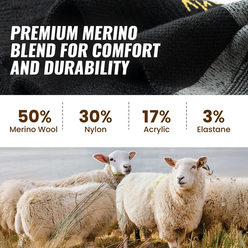 - COMPOSITION - KACIIXAA hiking socks are made of 50% Superfine Merino Wool, 30% Nylon, 17% Acrylic, 3% Elastane, which are wearable and durable. Merino wool's natural thermoregulation adapts to and keep you warm, so you can wear them in different season.