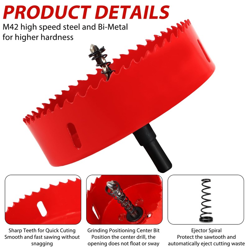 • Easy to use: the high-speed steel hole saw is equipped with clean edges for smooth and effortless cutting, allowing smooth, effortless cuts. Once this is done, the spring around the drill immediately pushes the disc out of the saw automatically.