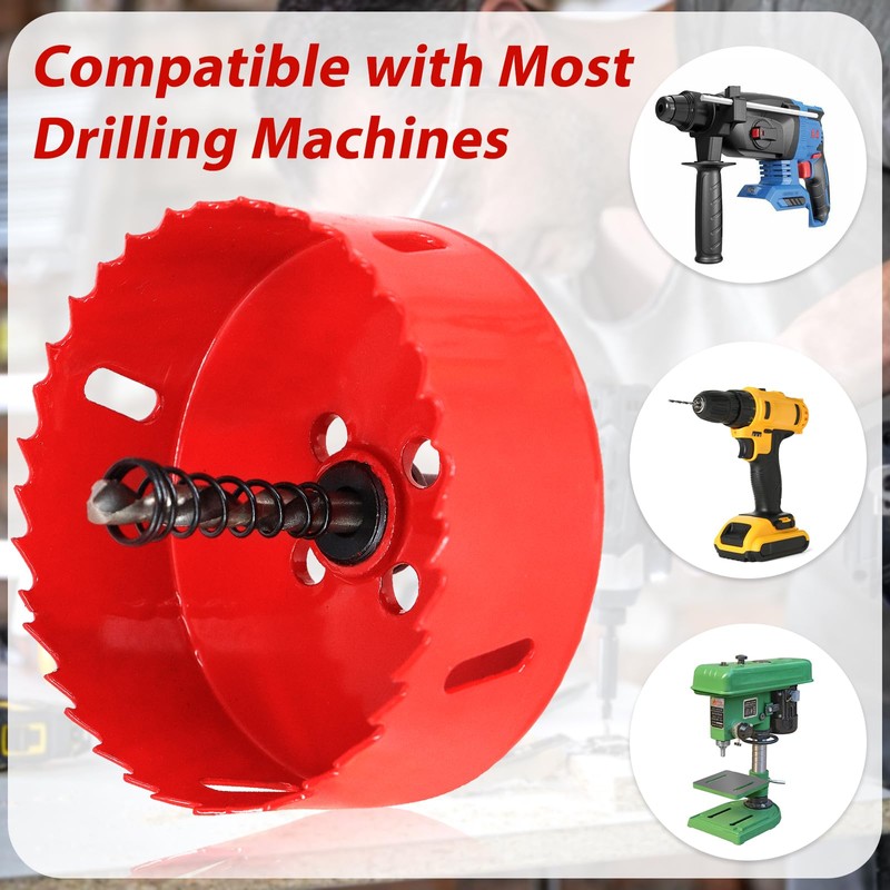 • Many sizes to choose from: Package includes 1 hole saw, 1 hex bit adapter, 3 high-speed steel quick drills, 1 hex key. Our hole saws range from 25mm to 200mm diameter, with 42 sizes to choose from!