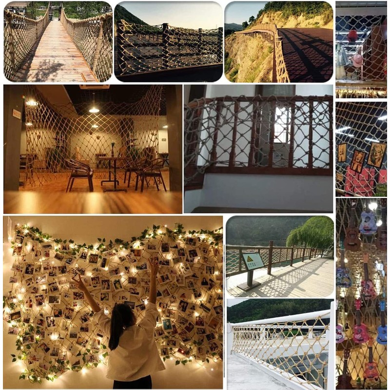 - ★【Indoor or outdoor decoration net】: indoor can be used for bar, coffee shop retro decorative, ceiling net, photo wall net, clothes net, room partition; Outdoor can be used for kindergartens, amusement parks, public facilities, landscape fences, suspension bridge protection, rope net theme parks, tree house nets and other purposes.