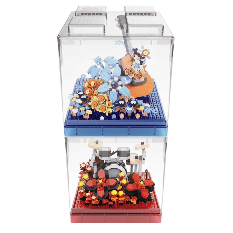 - Esta idea de juguete de bloque de construcción de guitarra y tambor es una réplica meticulosamente elaborada, y lo configura con una romántica escena de flores. Está hecho con material plástico de alta calidad, asegurando un aspecto realista y un diseño detallado