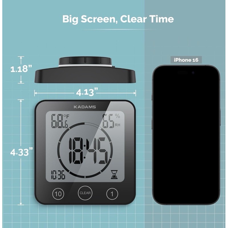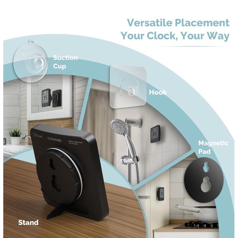 [ Efficient Time Management ] Stay organized and save time with KADAMS water-resistant bathroom shower clock timer, designed to help you keep track of your daily schedule