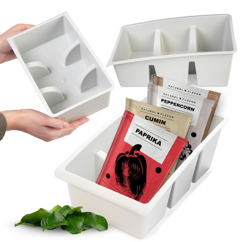 In our container you can store spices, herbs and other ingredients - curry, cinnamon, marjoram. So you can keep your kitchen cabinet tidy. A divider divides the container into two areas. In one there is, for example, space for sharp, and in the other for mild spices. Bottom line? You will find necessary bags even in the dark. And you're ready for lunch!