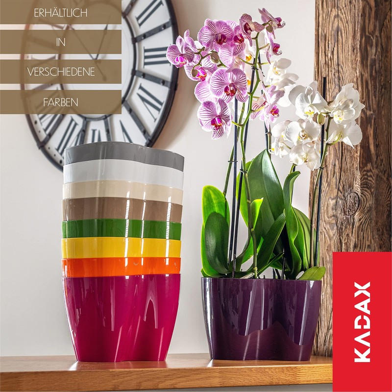 - The beautifully colourful pot enhances the plant’s attractiveness. Our products come in plant-like colours for easy matching. This decorative pot stands out thanks to its shiny surface, pleasant colours and simple elegance. There is enough space for two orchids. The flower pot brings out the natural beauty of the flower and ensures its proper development.