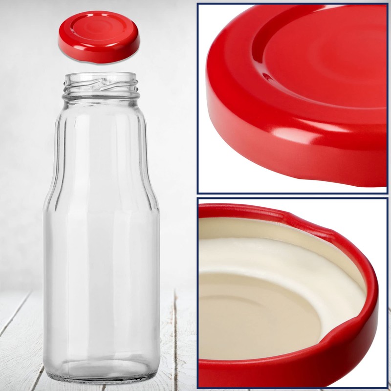 - Airtight: curved twist-off lids are perfect for pasteurisation. The sunken lid guarantees a tight seal and protects the contents from air access, drying, moisture and dirt.