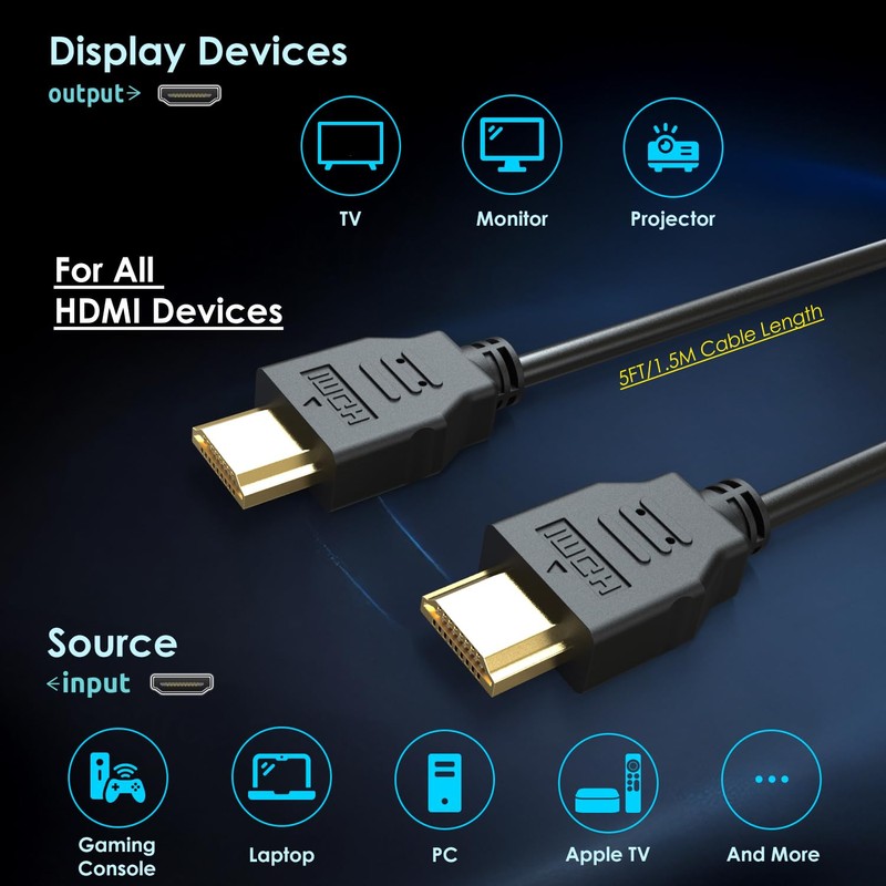 Kado 5ft HDMI Cable, High Speed HDMI 1.4 with Ethernet 1920x1080 FHD 144Hz 100Hz 60Hz HDCP, Male-to-Male 1.5m Length Genuine Parts Made for Sceptre Monitor, TV, Gaming Console, PC, Laptop, Projector