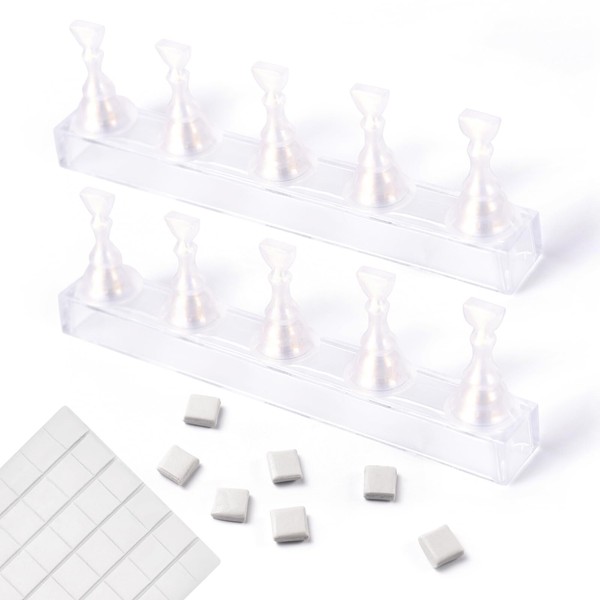 KADS 2 Sets Nail Display Stand Nail Practice Holder Magnetic Fake Nail Tips Holder for Press on Painting Nail Art Stand with 66Pcs Reusable Clay Manicure Design Tool for Salon and Home Use, Jelly White