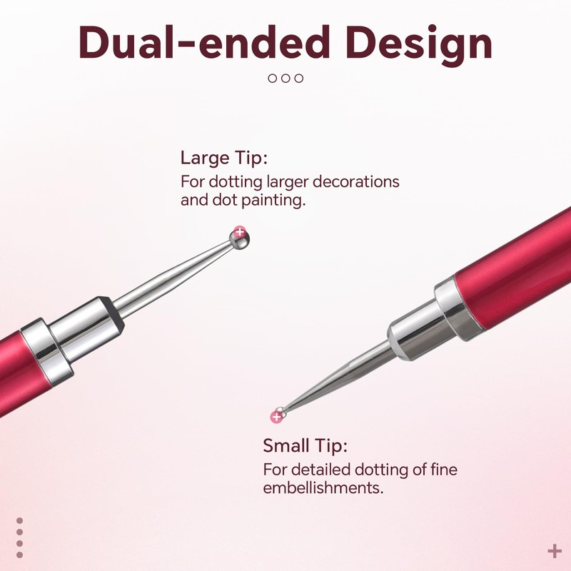 - 5 Stifte + 10 Spitzen = 50+ Verwendungen - Jeder von 5 Stiften kann 2 Spitzen aufnehmen (doppelseitig), was einen schnellen Wechsel zwischen Punktgrößen ermöglicht, ohne das mittlere Design zu reinigen.