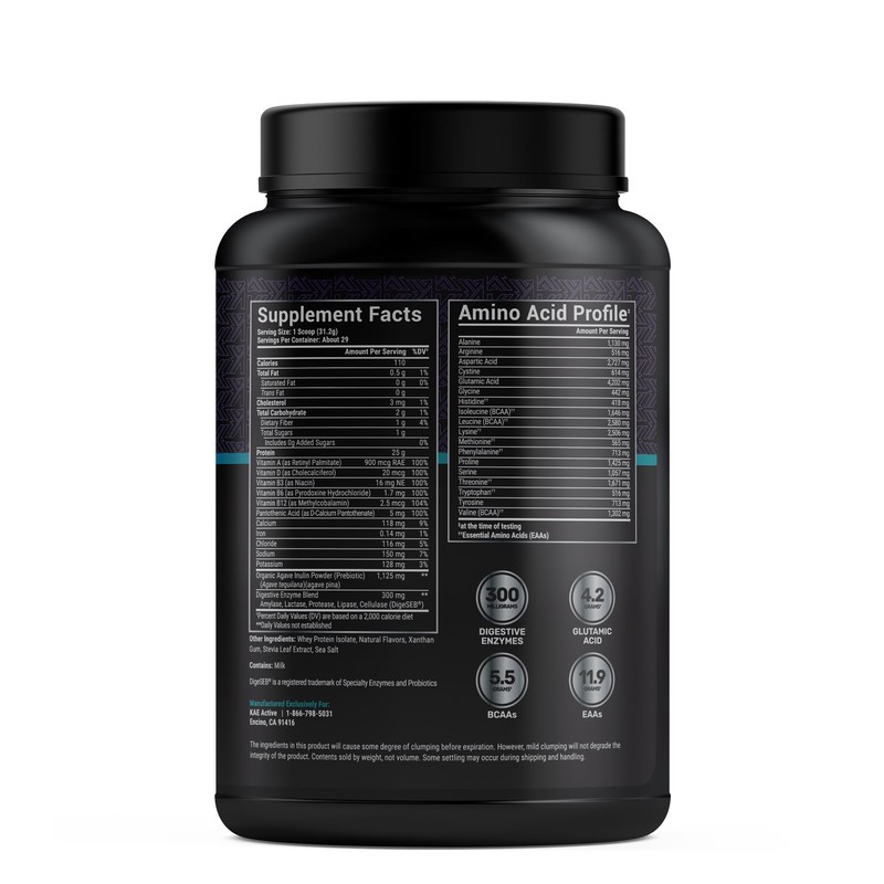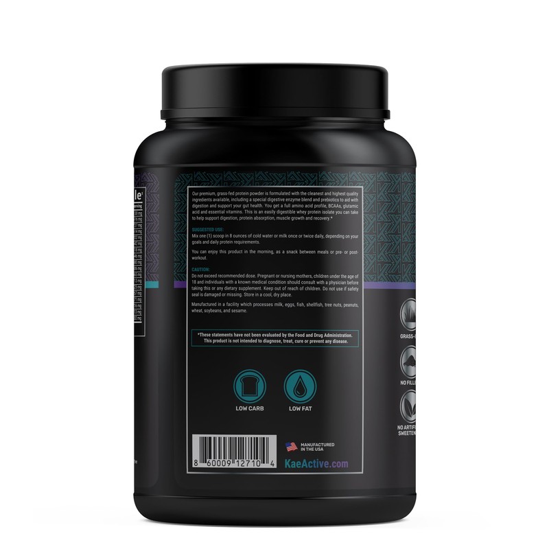 KAE Active Easily Digestible Vanilla Grass-Fed Whey Protein Isolate Powder. Clean Formula with only 5 Ingredients. 25g of Protein.