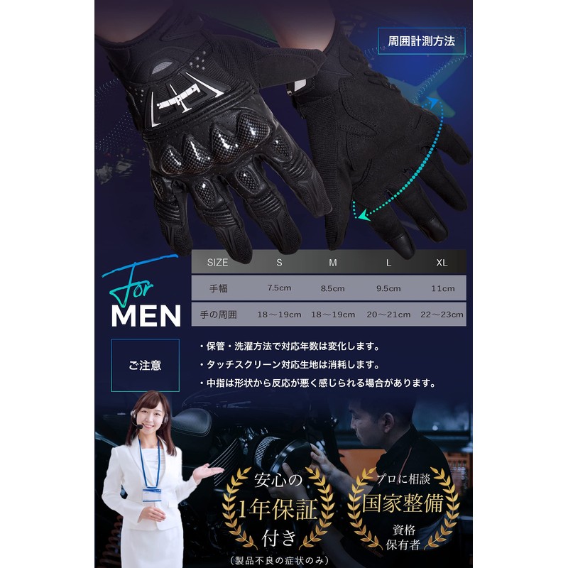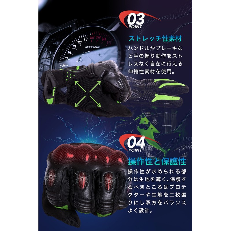 - New Gloves: Based on customer feedback, a touch sensor has been added to the thumbs.This allows you to zoom in and out on navigation screens without stress.Another feature is the use of genuine carbon protectors