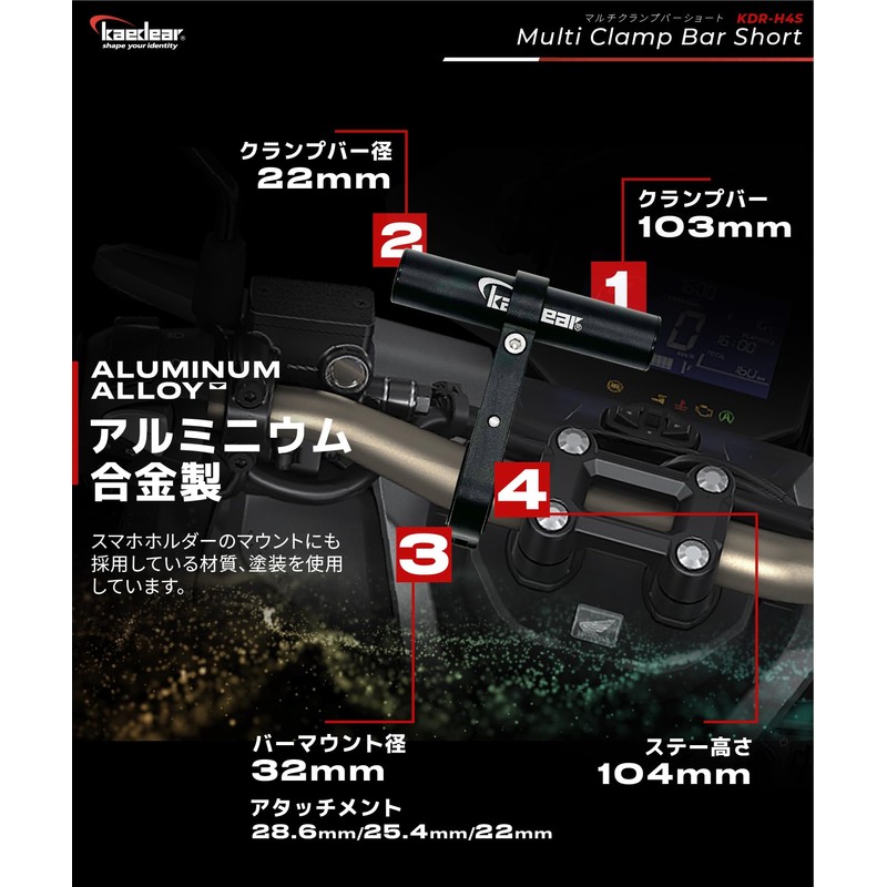 Kaedear KDR-H4S Motorcycle Multi-Bar Clamp Bar Stays Handle Bar Motorcycle Smartphone Holder Clamp Diameter 0.9 inches (22 mm) Handle Diameter 1.3 inches (32.0 / 25.4 / 22.0 mm) Clamp Bar Mount