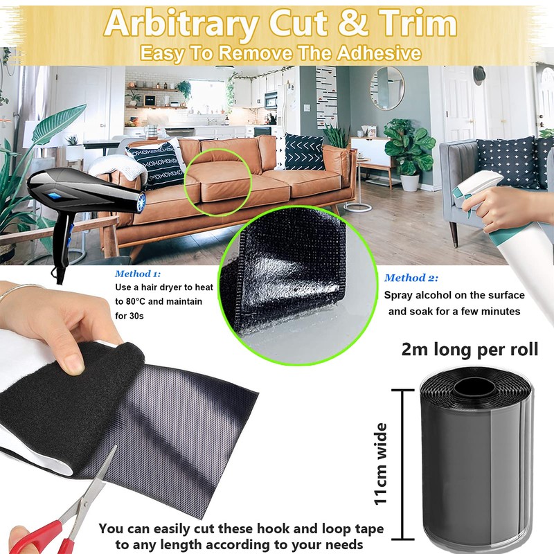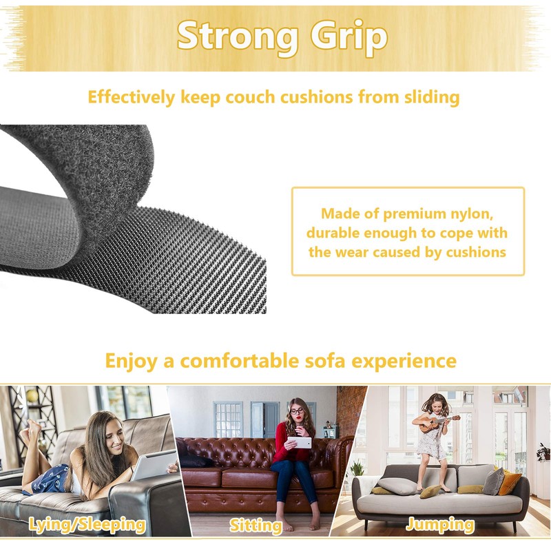Strong AdhesiveOur hook and loop tapes feature high strength adhesives backing. It can adhere firmly to couch cushions to prevent slipping, improving the comfort of the sofa to give you a relaxing time.