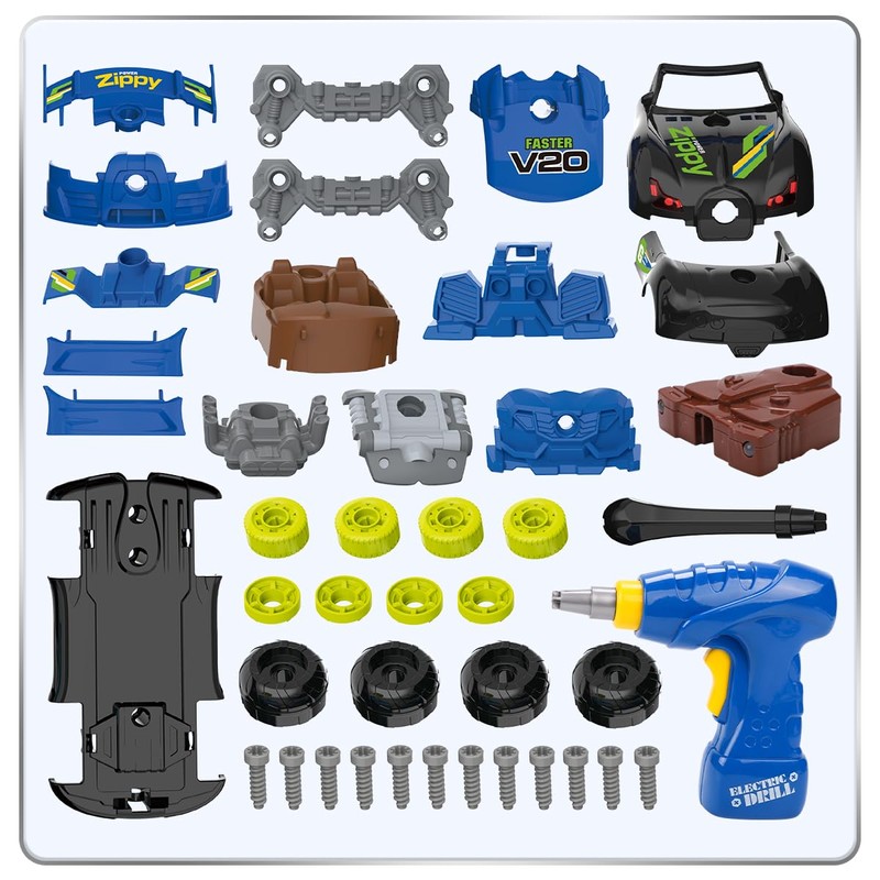 - 【Child Safety & Quality Assured】The 43 pieces set comes with a electric drill,a hand drill,screws and car parts needed to assemble, take apart, reassemble, fix & repair. The take apart vehicle toy is made of environmentally-friendly ABS materials with high ductility, BPA free, durable and smooth edge without burrs to protect children's hands.