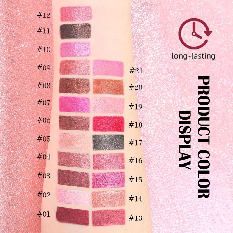 - Versatile Shades: Available in a range of colors to complement any skin tone or makeup style, from subtle nudes to bold reds. The metallic and pearlescent effects create a more striking look than regular glosses, enchances your visual impact, making it a perfect choice for special occasions or everyday sparkle.
