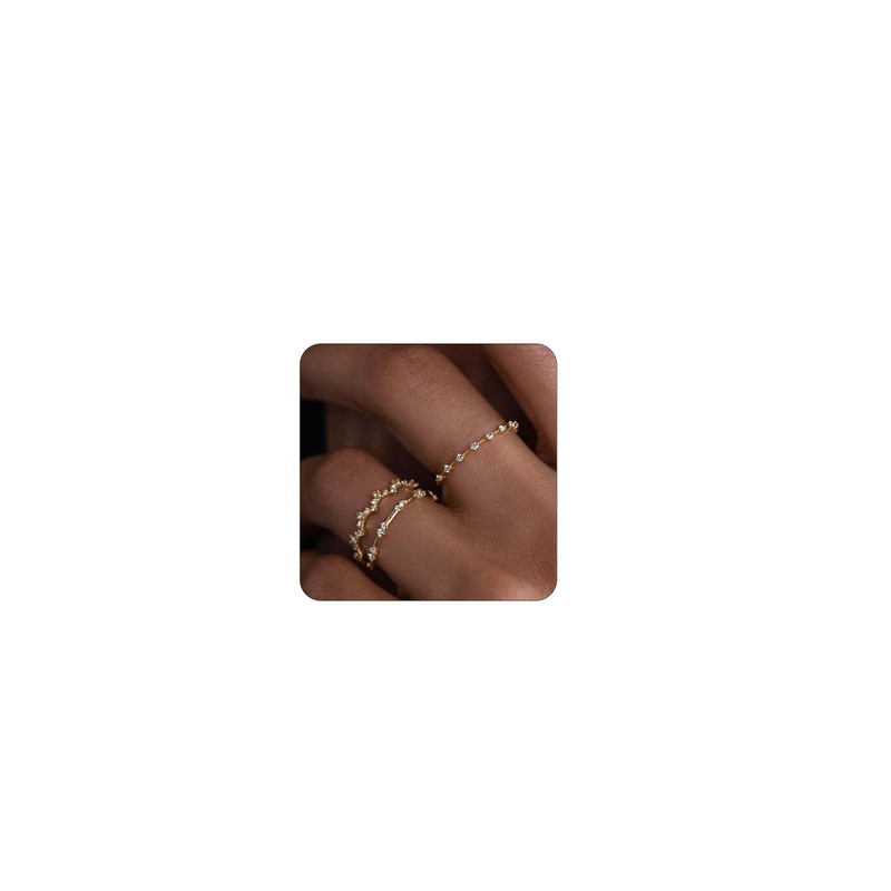- DAINTY GOLD RING SET: A set of 3 stackable women's rings, each set of rings contains unique diamond elements, and the design is very shiny and fashionable. In addition, there are simple gold rings in each set of rings, which are suitable for daily wear. You can freely mix and match or wear these exquisite gold rings alone to create a style that suits you
