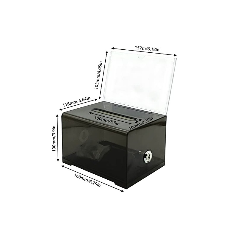 - LOCKABLE WITH KEY Our suggestion box features a lock mechanism and comes with two keys that provide an extra layer of security. This lock ensures that only authorized personnel can access the content, which further protects the privacy and integrity of the suggestions, opinions or donations collected.