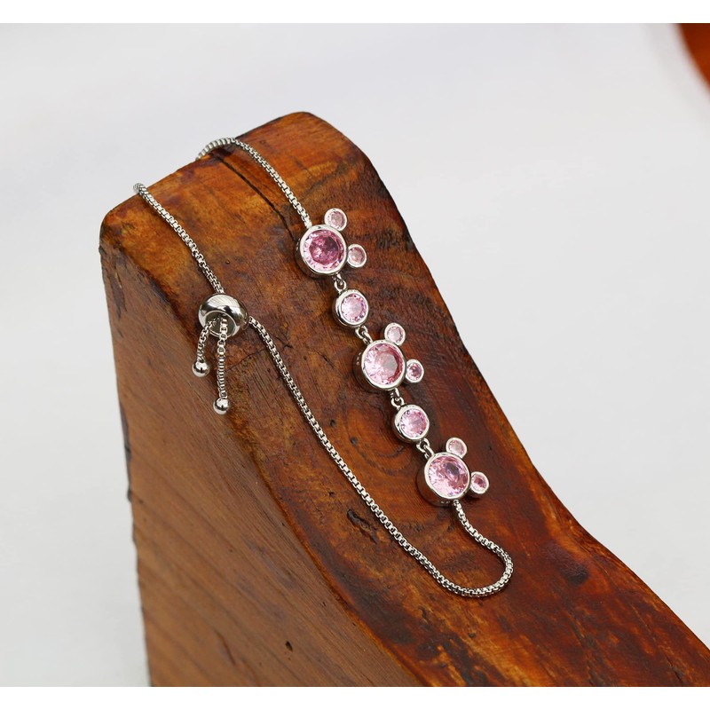 Kaguyo Silver Bracelets for women, Mouse Crystal Bracelets,Clear Amethyst Pink Zirconia cute Mouse Adjustable Infinity Bracelets for Women Girls, Birthday Gift (pink)