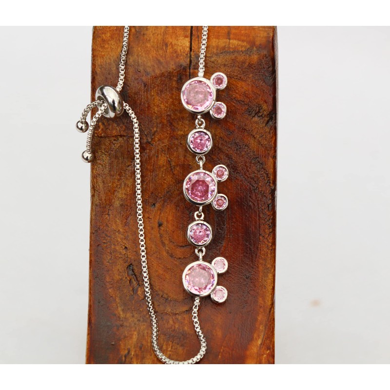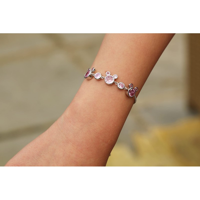 - The Mickey Mouse crystal bracelets showcase the iconic charm of the beloved character. The intricate design captures the essence of Mickey Mouse, with his recognizable ears and cheerful expression. The inclusion of clear, amethyst pink, and zirconia crystals adds a touch of sparkle and brilliance, creating a stunning and eye-catching accessory.