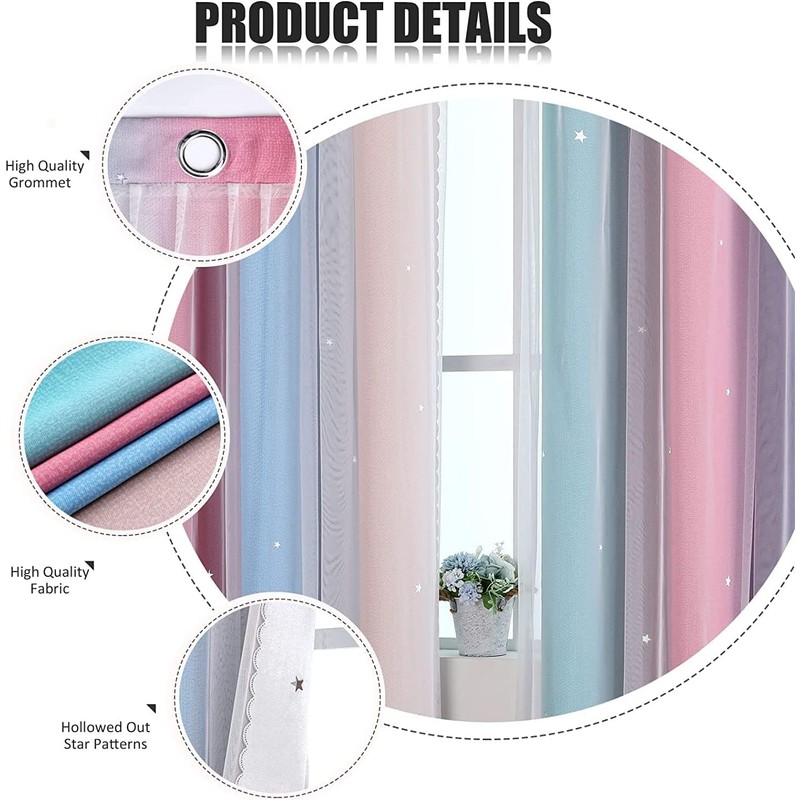 - ♘Well Made & Amazing Hollow Star Curtains Design:Very lovely colour,Ultra Light/Lightweight material is soft to touch.Hollow star designation is attractive & amazing so beautifully decorate the windows and room to let your or your baby’s mood more happy.When the sunshine come through the hollow star into the room,give you a perfect moving the star feeling.Well made and hang nicely.Rainbow curtains for bedroom curtains voile curtains voile net curtains,rainbow curtains for girls bedroom kids