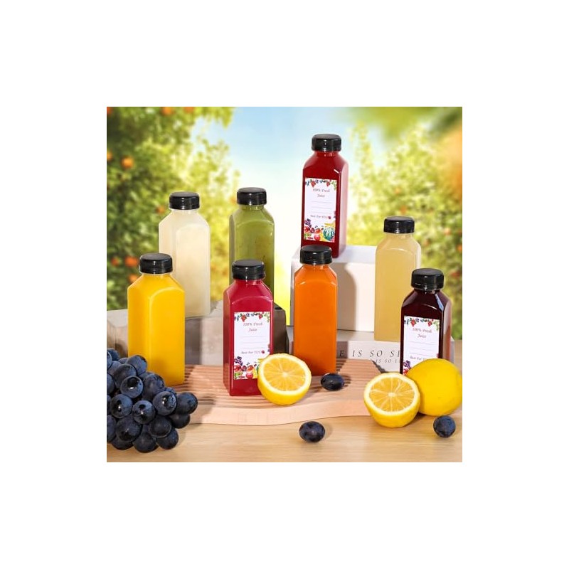 - Included 12pcs empty juice bottles in total, come with a cleaning brush, can easily clean the inner wall and bottom of the bottle.