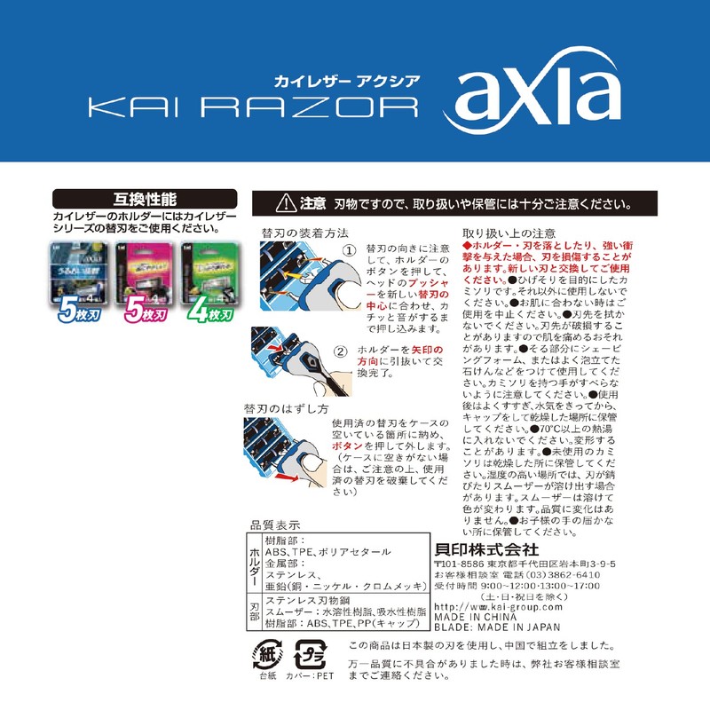 Kai Corporation KAI RAZOR AXIA 5 Blade Razor, Combo Pack, 5 Pieces